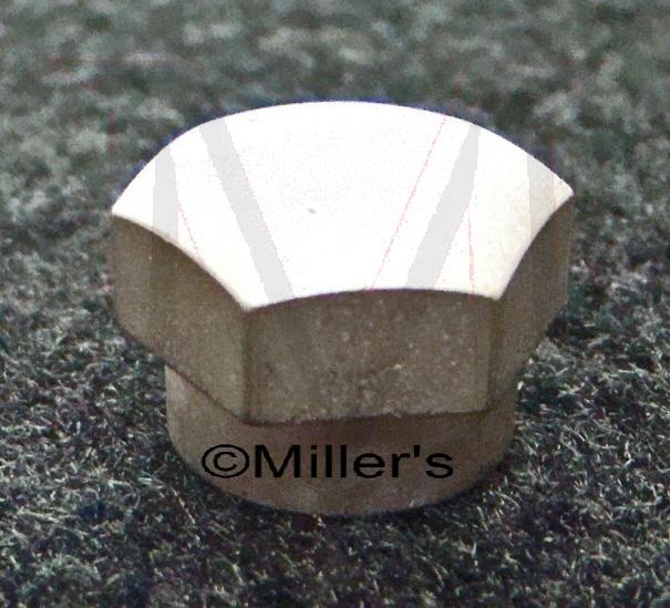 BRUSHED FINISH CAP NUT TO RETAIN W/W ARM TP POST AT COWL. 2 PER CAR.